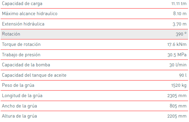 La grúa F115A, es la evolución del modelo tan reconocido F110A.