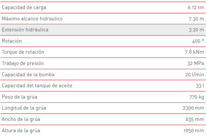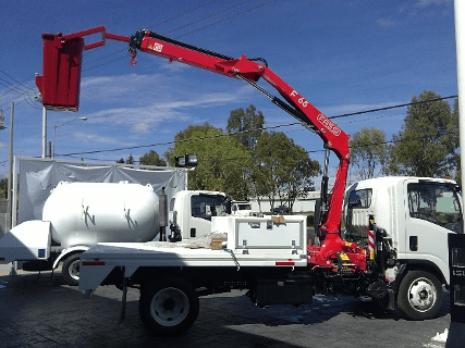 Este modelo puede ser montado en camionetas y camiones de tres y media toneladas. Es ideal para la carga y descarga de productos y materiales diversos.